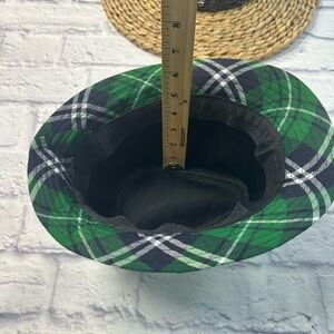 Stylish green plaid fedora hat perfect for adding a touch of flair to any outfit. Ideal for casual or formal occasions.
