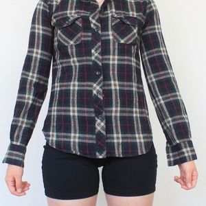Soft flannel button-up. Forest green and brown with red stripes. A little tight in the shoulders. Makes a great waist-tie. Please only bundle--minimum price $15.
