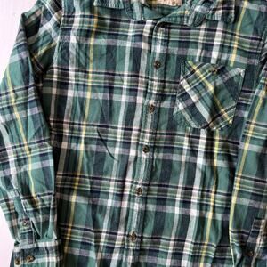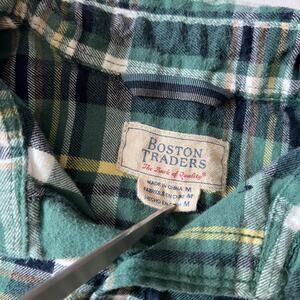 Green Plaid Flannel Size M Long Sleeve Button Up Collared Shirt Boston Traders