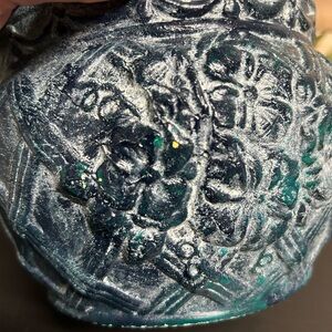 Upcycled 6 In Ceramic Planter Floral Boho Decor Dark Moody Green Home Decor