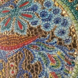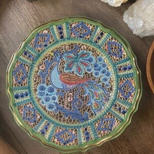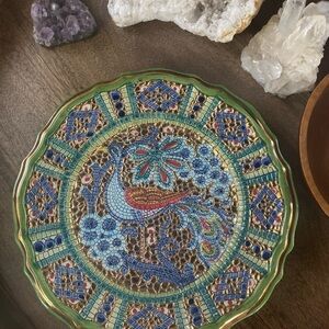 Entirely handmade green plate with peacock made in ceramic and hand painted. Manufactured and produced in ceramic in the heart of Italy. The peculiarity of this plate is the use of real 24-carat pure gold, the precious metal melts into the artifact, becoming a beautiful and precious piece.