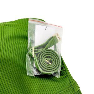 This strapless one-piece swimsuit features a supportive design with a detachable strap option, a gold front accent, and a vibrant green hue. • Removable shoulder straps for versatile styling • Gold-tone front detail for elevated design • Full back coverage • Comfortable stretch material • Ribbed texture for added style Top to bottom = 24 inches Width across bust = 16.5 inches @2484morales