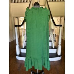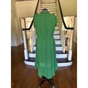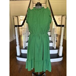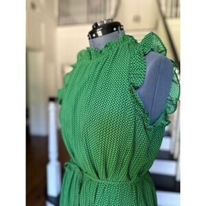 Green Polka Dot Chiffon Ruffle Dress Spring Summer Office Church Modest Travel