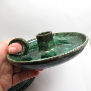 This listing is for the pair of vintage South Blue Hill Pottery candle holders pictured. They are a unique tortoise shell mixed greens glaze. The pair are in good vintage condition with no chips or cracks. They are stamp signed SBHP S. BLUEHILL ME. on the bottom. They are really a nice mix of earthy green tones with a nice sheen.