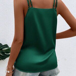 Green Preppy Womens Solid Cross Wrap Cami Top