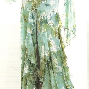 Green Printed Gown Multicolored w/ Included Shawl
