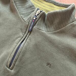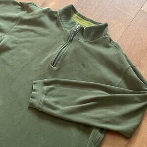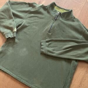 Green quarter zip sweatshirt with embroidered logo on chest. Oversized fit.