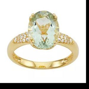 14k Gold over Fine Silver Green Quartz & White Sapphire Ring