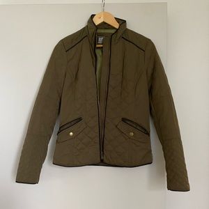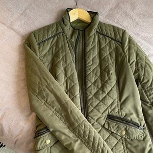 Olive green quilted jacket, so flattering and perfect for fall! It’s just a bit tight on me, otherwise I’d keep it forever. Size XS, fits on the lower end of XS - S.
