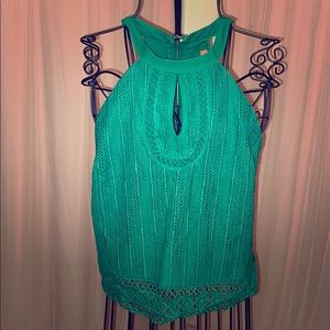 Polyester tank with crotchet in the front! Super cute! Too big for me!