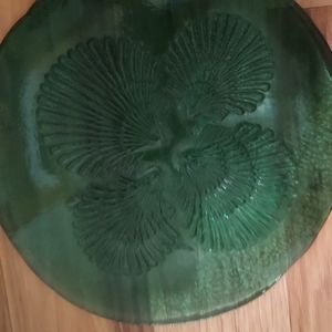 Green Recycled Glass Plate Platter Scallop Shell Relief on Bottom 10 Inches