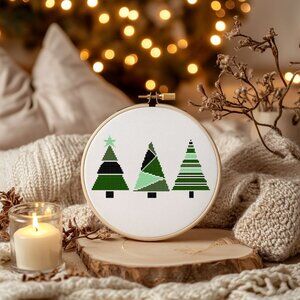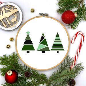 Green Retro Christmas Tree Merry Christmas Counted Cross Stitch Kit