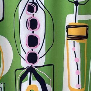 Color/Pattern: Vibrant green with abstract retro print