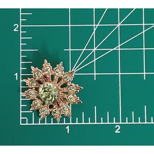 Green Rhinestone Atomic Star Burst Brooch On Gold Tone Metal