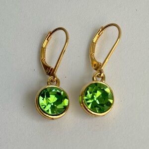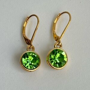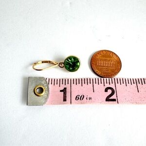 Green Rhinestone Crystal Earrings Gold Tone Drop Festive Spring Summer Dainty