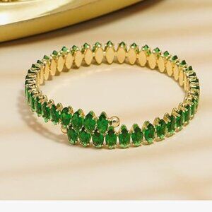 Green Rhinestone Cuff Bracelet – Sparkling Cubic Zirconia Bangle