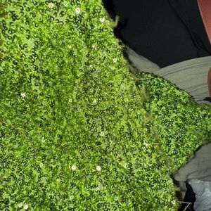 Worn for a party, the dress was to the floor so the bottom is pulled a little but not visible when worn. See photos. Scarf not included