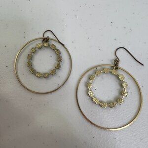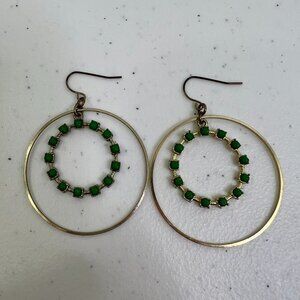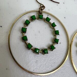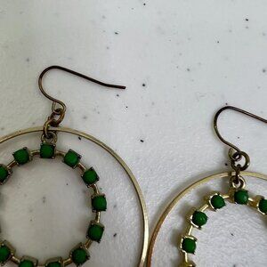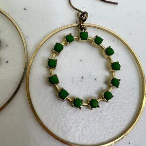 Green Rhinestone Earrings Gold Tone Hoop Dangle Big Circle