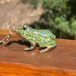Green Rhinestone Frog Keychain Charm