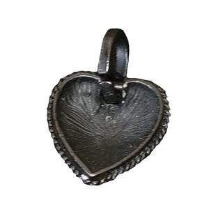 Black metal heart pendant with pave set green rhinestones. The heart is hollow on the back giving it a bit of a 3D look. Measures approximately 1.5" from top to bottom/1" wide at widest part.