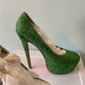 Step out in style with these stunning green rhinestone high heels. Emerald Green Rhinestone platform heels