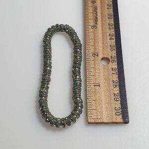 Elegant rhinestone bracelet featuring shimmering green stones and silver-tone links. Stretch design offers easy wear with a vintage-inspired aesthetic, adding charm to any outfit.