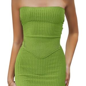 Stylish strapless ribbed 2 piece in green. I only wore it once as the base for a Statue of Liberty costume!
