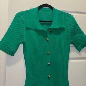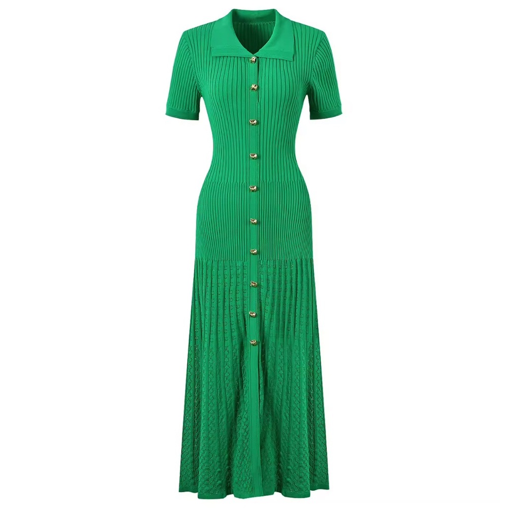 Green Ribbed Button-Down Dress