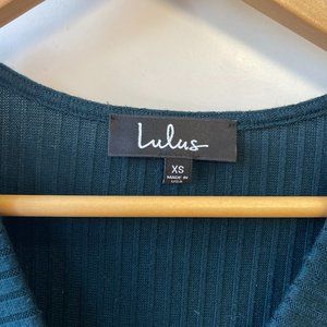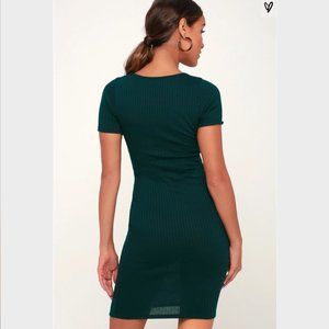 This sweet little dress (shaped by medium-weight ribbed knit) will call your name from inside your closet with its short sleeves, fitted bodice, and figure-flaunting bodycon skirt. Midi hem keeps things modest and a trio of round buttons embellish the V-neckline.