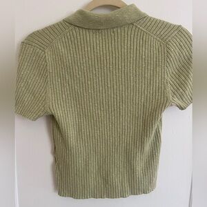 Green Ribbed Button-Up Sweater Tee