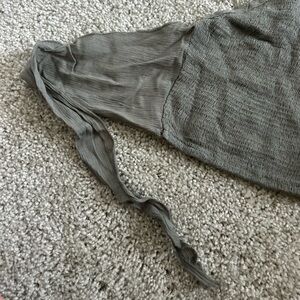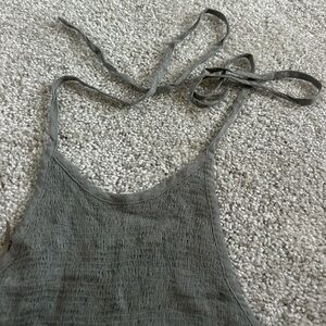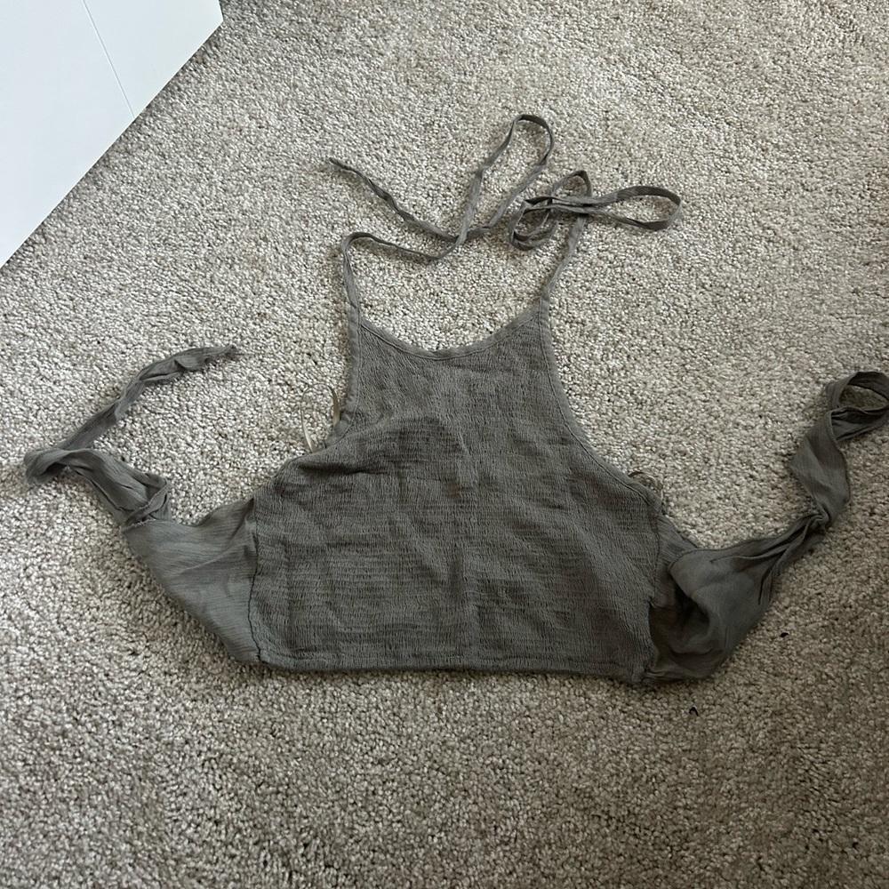 This green ribbed crop top is super stretchy. It has a tie around the back and a tie around the neck so it is easily adjustable. In good condition.