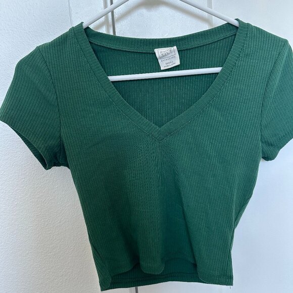 Green Ribbed Cropped Baby Tee - Size S