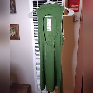 Sleeveless, tank-style, open-back dress.