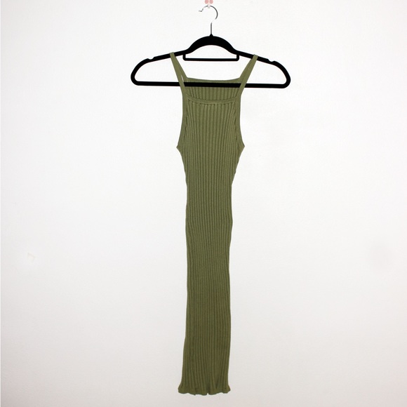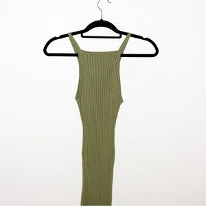 Get noticed in this sleek green ribbed midi dress. The trendy halter neckline and spaghetti straps add a touch of modern flair, while the figure-hugging silhouette keeps it classy yet sexy. Perfect for any occasion, from casual outings to date nights. Elevate your style effortlessly with this gorgeous dress!
