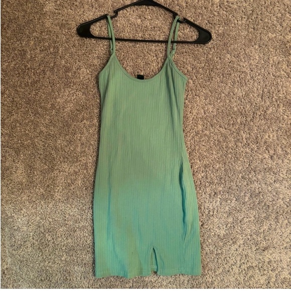 Stylish green ribbed dress with a sleeveless design. Perfect for casual outings.