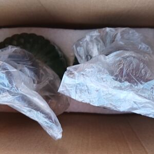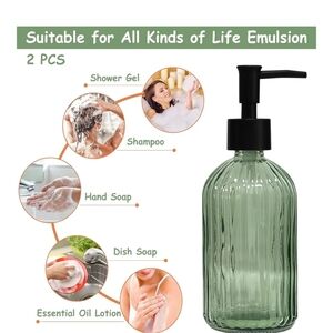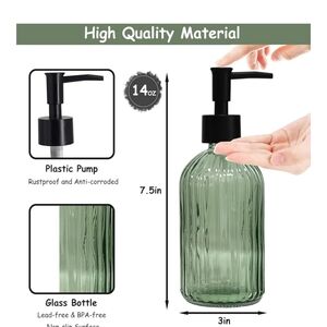 Enhance your bathroom decor with this elegant green glass soap dispenser set. Perfect for adding a touch of style to your home bath.