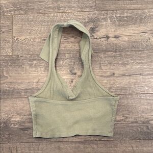 Stylish green ribbed halter top perfect for casual outings. Enjoy comfort and style. Took tag out but it is a size small.