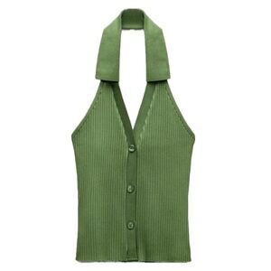 zara green ribbed knit vest with collar and button front #knitwear #vest new with tags size small