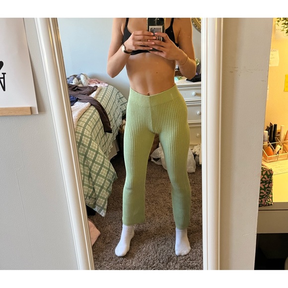Stylish green ribbed knit pants. Perfect for casual wear.