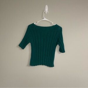 Green Ribbed Knit Sweater Elbow Length Sleeve Stretchy Vintage