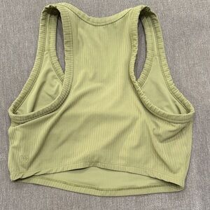 Stylish green ribbed racerback tank top. Perfect for casual wear. Built in bra