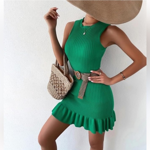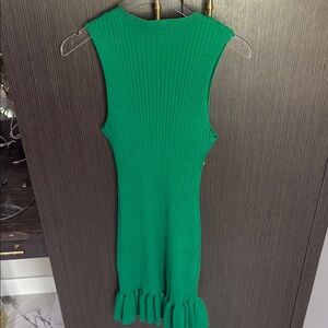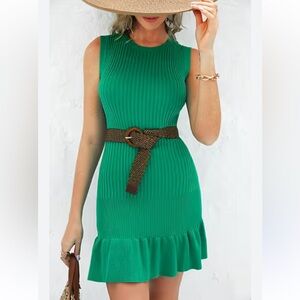 Green Ribbed Ruffle Hem Dress NEW M