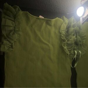 Green Ribbed Ruffled Blouse