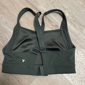 This green sports bra is crafted from a ribbed, textured fabric that offers both stretch and support. The halter-style neckline and wide straps ensure comfort and stability during workouts. Ideal for exercise or casual wear, its simple design focuses on functionality.