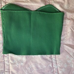 Green Ribbed Strapless Top