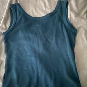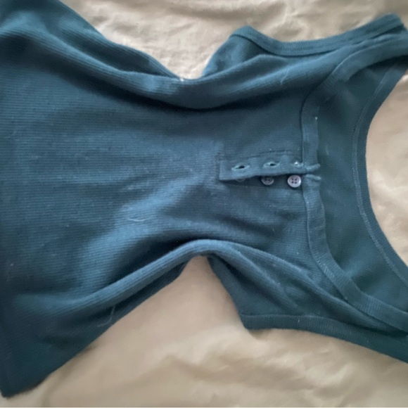 Green tank top with rubbed fabric and functional button details. (More forest green colored)