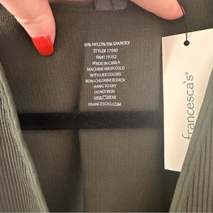 NWT. Francesca’s green ribbed tight crop top. Spandex and Nylon. Extremely comfortable. Only worn to try on.