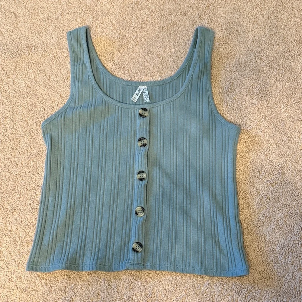 Stylish green ribbed tank top with button-down front. Perfect for casual outings. Excellent condition.