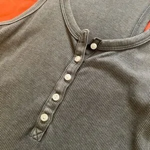Stylish green ribbed tank top with button details. Perfect for casual outings or layering. Soft and comfortable fabric.