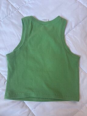 Soft ribbed tank top in a bright green color. Comfortable sleeveless design for everyday wear. Easy to pair with shorts or skirts for casual looks.